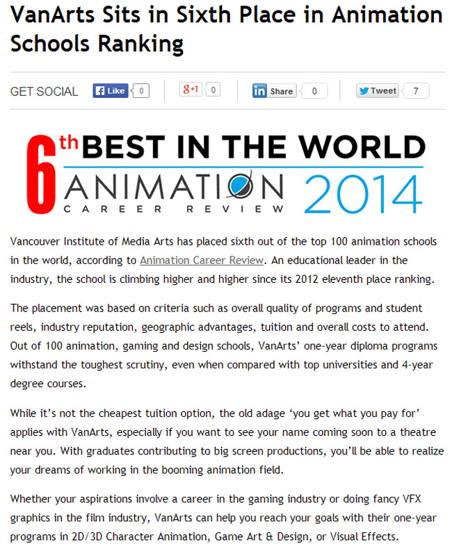 Also a big thanks to Study Magazine for sharing the good news of our #6 Ranking in the World’s Top 100 Animation Schools by Animation Career Review!